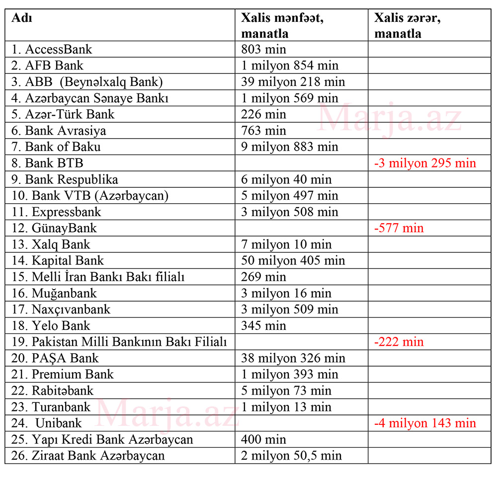 Banklardan 22-si mənfəət, 4-ü zərər açıqlayıb - SİYAHI
