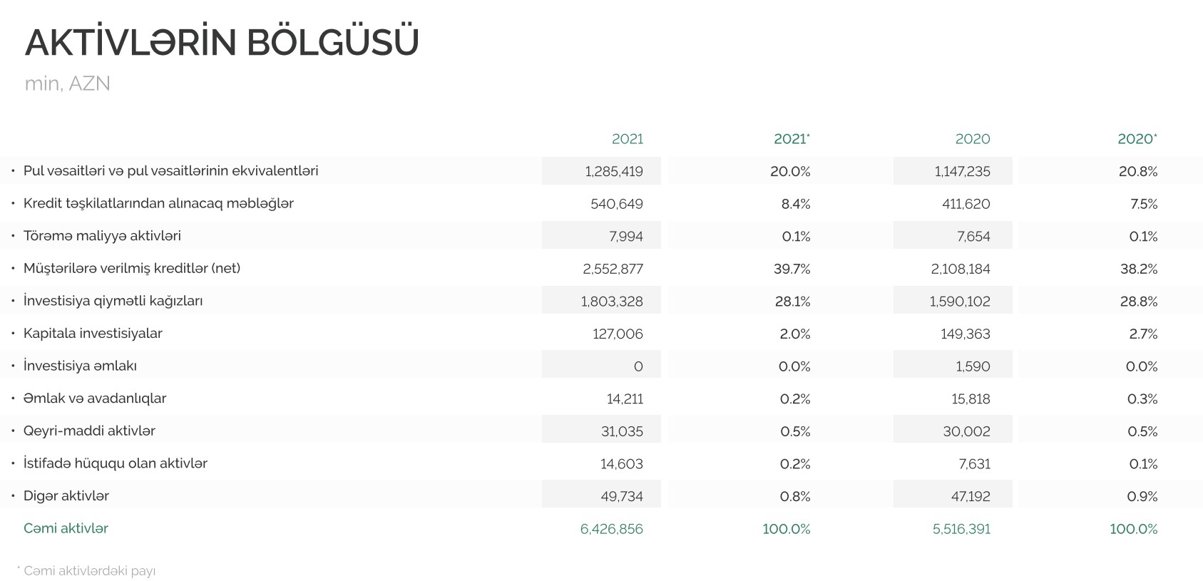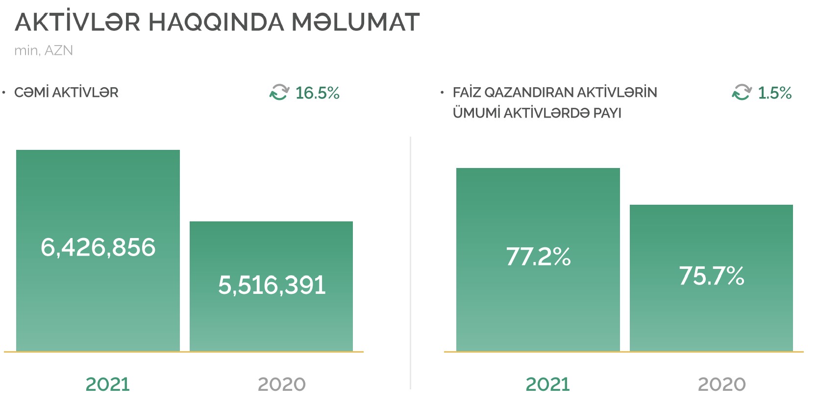 2020-ci illə müqayisədə 2021-ci ildə "PAŞA Bank Azərbaycan"ın cəmi aktivləri 16,5% artaraq 6 milyard 426 milyon 856 min manata çatıb. Bank 2020-ci ilin sonunda 5 milyard 516 milyon 391 milyon manat cəmi aktivlərə malik idi. Faiz qazandıran aktivlərin ümumi aktivlərdə payı 75.7%-dən 77.2%-ə yüksəlib.
