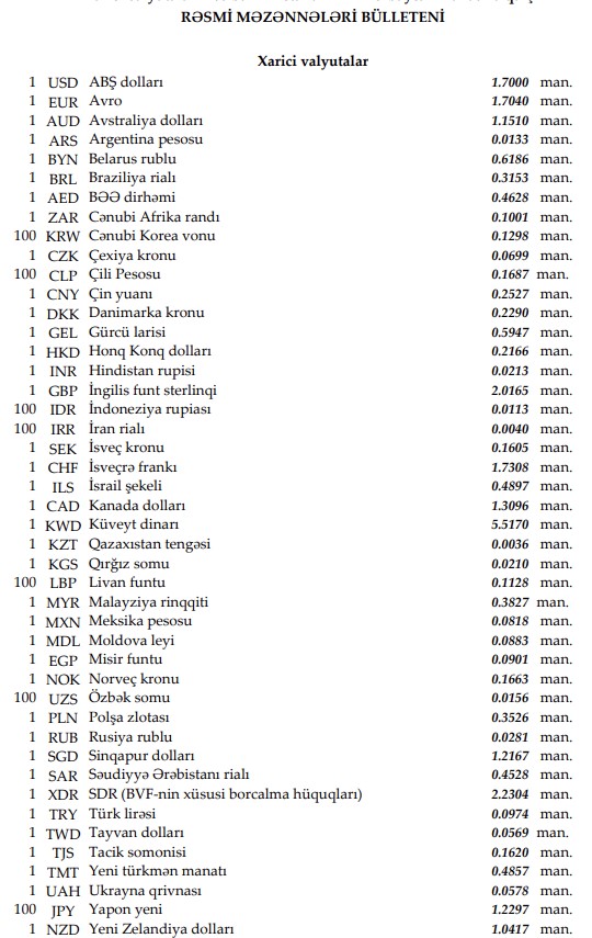 Dolların sabah üçün rəsmi məzənnəsi müəyyən olunub