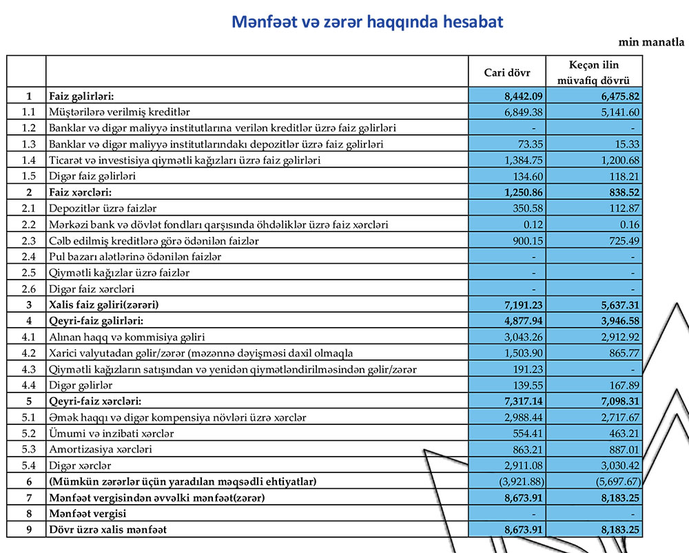 Cari ilin II rübündə açıqlanan məlumata əsasən bank xalis faiz gəlirləri üzrə 7.2 milyon, xalis haqq və komissiya gəlirləri üzrə isə 3.2 milyon mənfəət gəlir əldə edib.