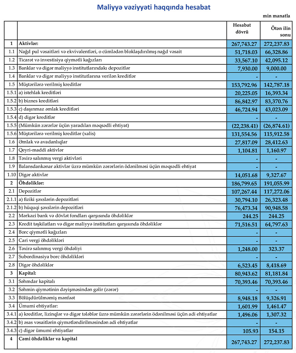 Qeyd edək ki, bankın məcmu kapitalı 80 milyon manat təşkil edir.