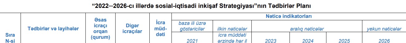Marja-nın məlumatına görə, bu, Azərbaycan Respublikasının 2022-2026-cı illərdə sosial-iqtisadi inkişaf Strategiyasında bildirilir.