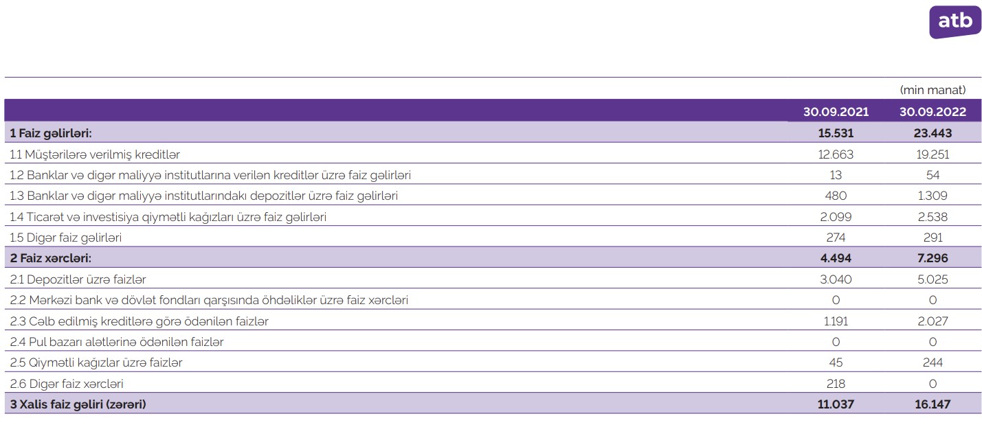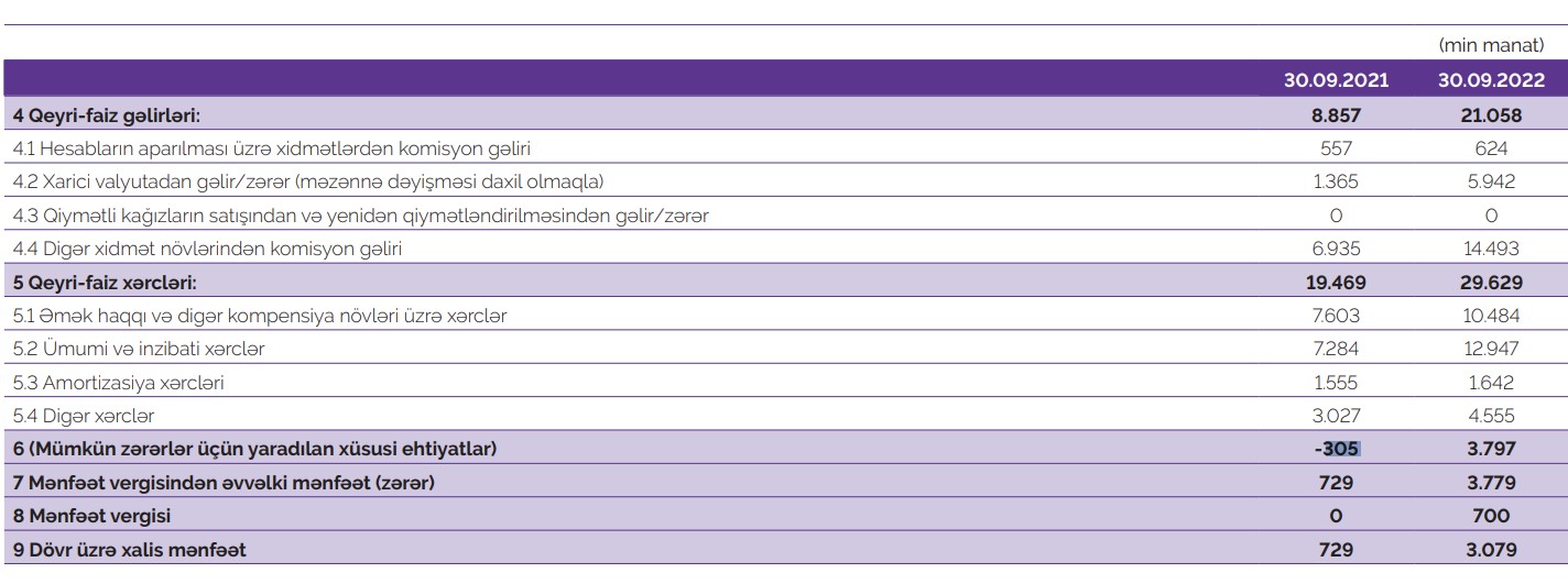 Azər Türk Bank 2022-ci ilin doqquz ayını 3 milyon manatdan artıq xalis mənfəətlə başa vurub.