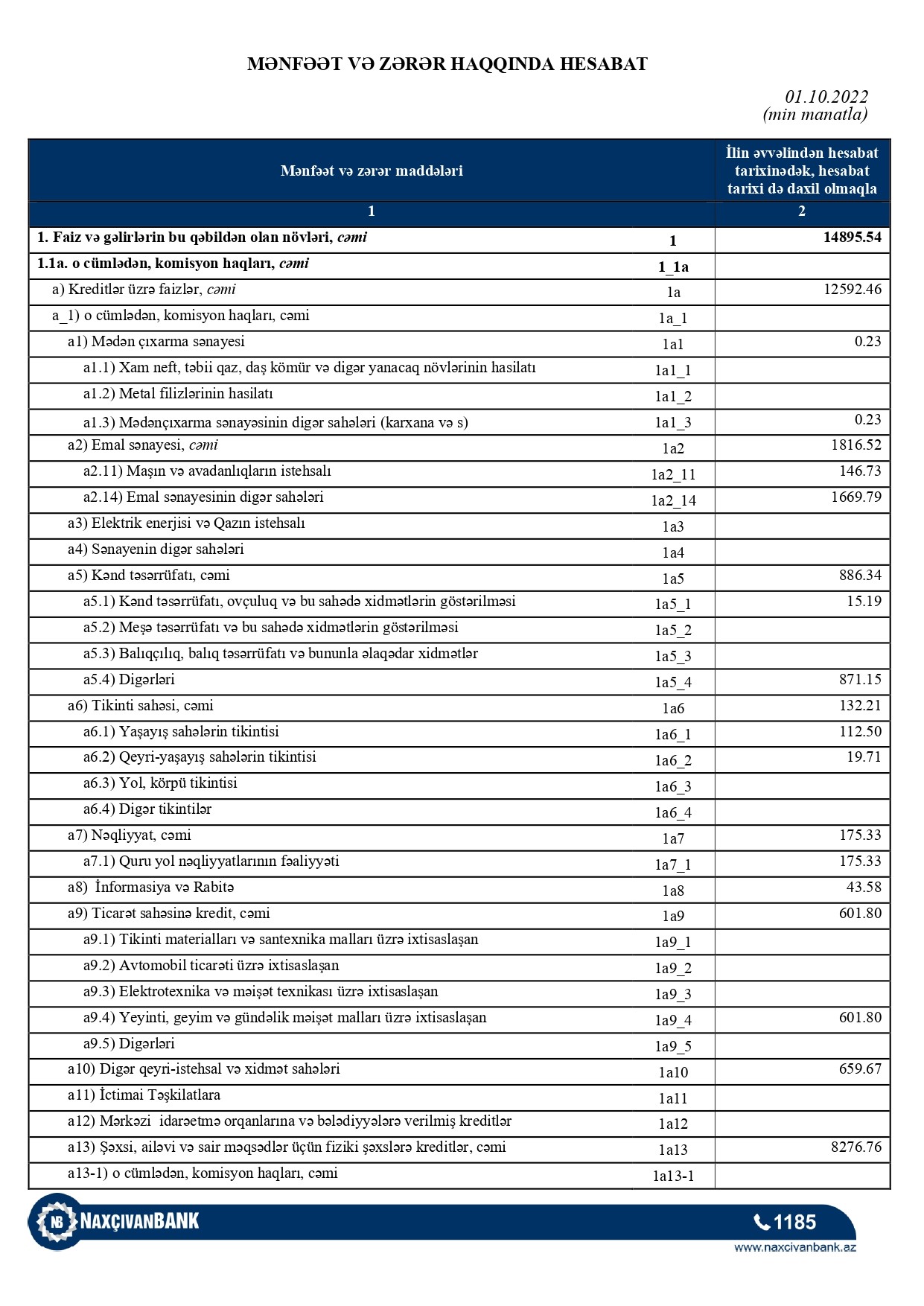 "Naxçıvanbank" 2021-ci ilin 9 ayını 5 milyon 924 min manat xalis mənfəət ilə bağlamışdı.