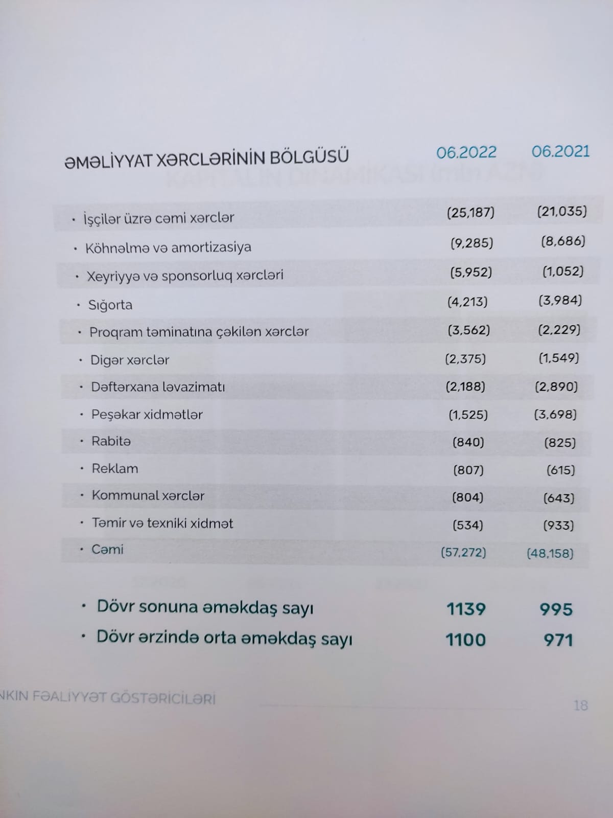 2022-ci ilin 1-ci yarısında PAŞA Bankın işçilər üzrə xərclərinin (25 milyon 187 min manat) cəmi əməliyyat xərclərində (57 milyon 272 min manat) xüsusi çəkisi 44% təşəkil edib.