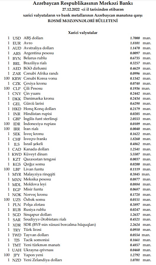 Dolların sabah üçün rəsmi məzənnəsi müəyyən olunub