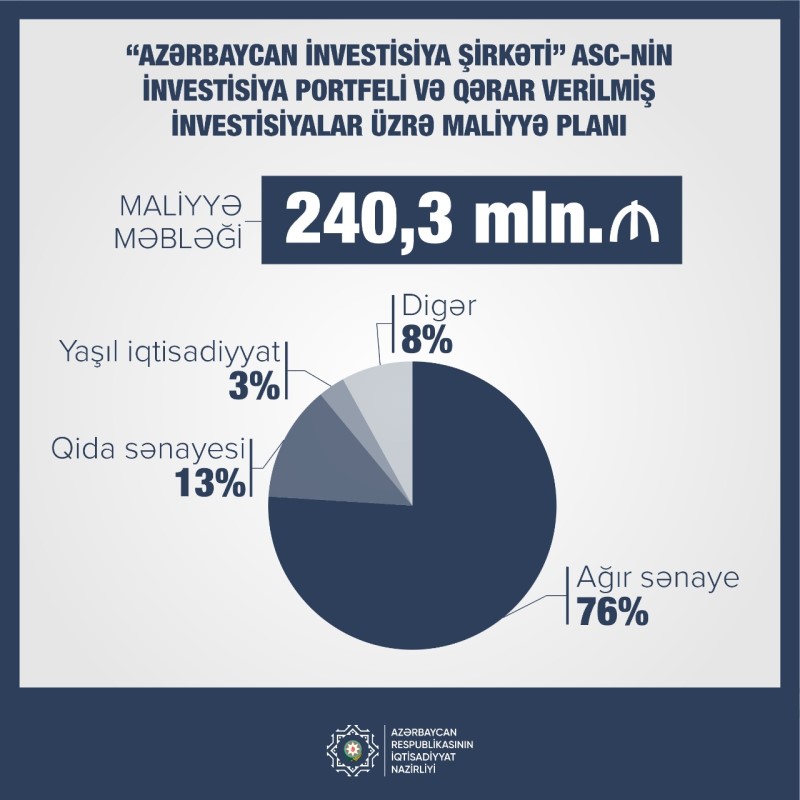2022-ci ilin sonuna Azərbaycan İnvestisiya Şirkətinin investisiya portfeli və qərar verilmiş investisiyalar üzrə maliyyə məbləği 240,3 milyon manat təşkil edib.