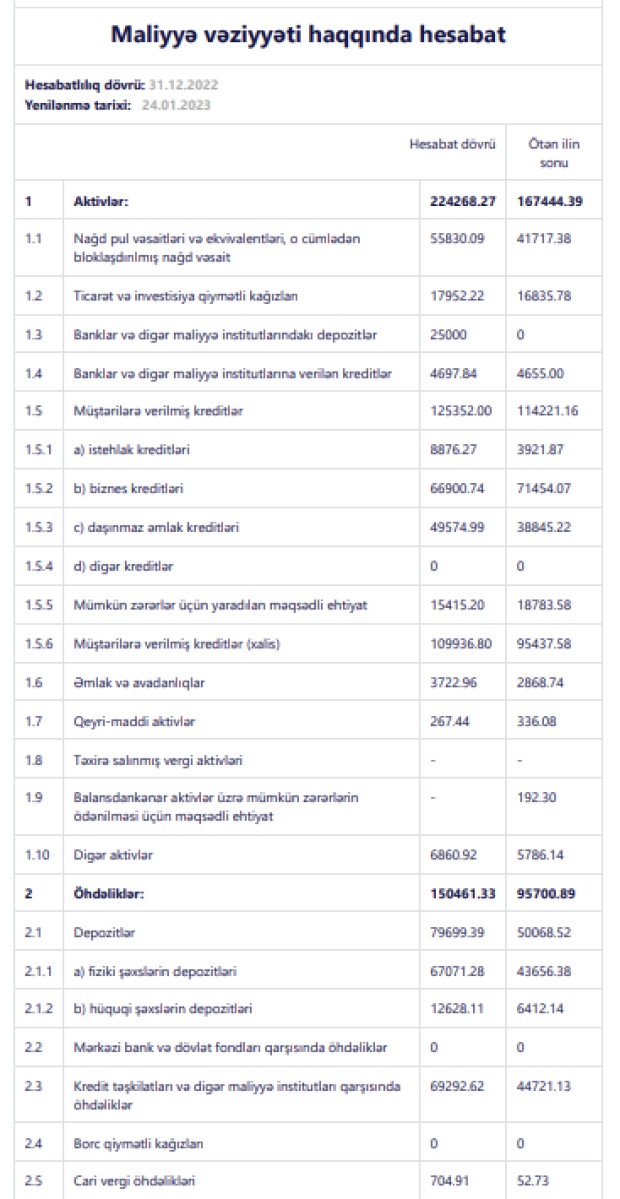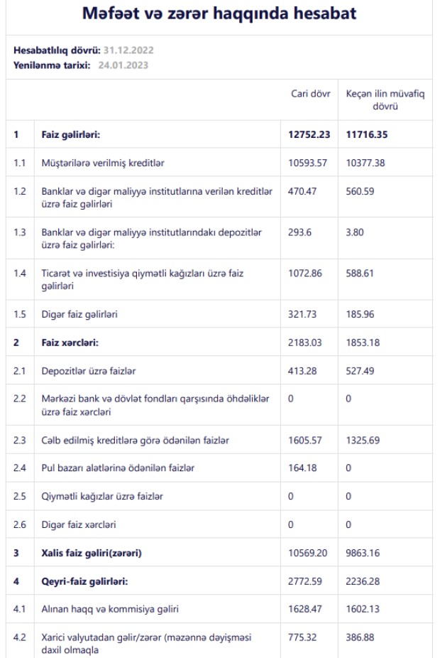 Bankın xalis mənfəəti 2 dəfədən çox artıb."Bank Avrasiya" ASC 2022-ci il üzrə maliyyə göstəricilərini açıqlayıb.