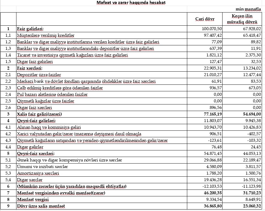 "Bank of Baku"nun xalis mənfəəti kəskin artıb