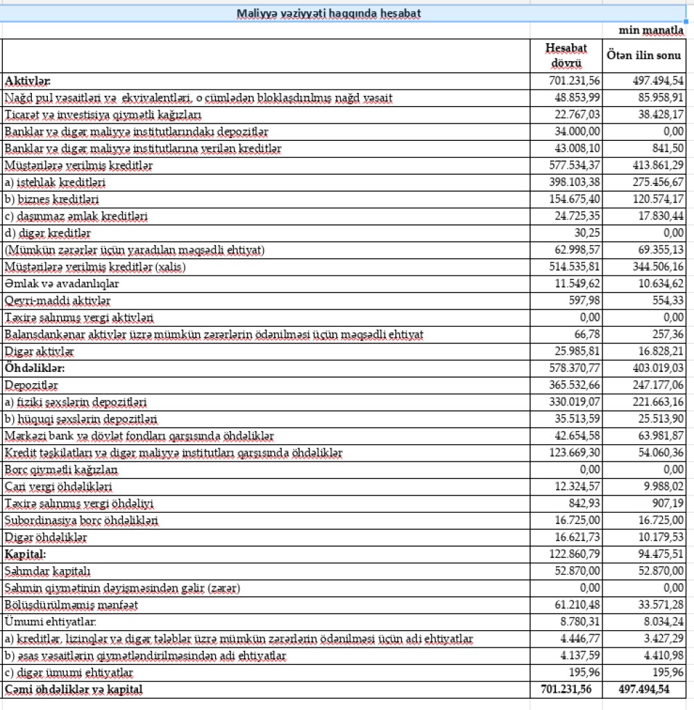 "Bank of Baku" ASC 2022-ci il üzrə maliyyə göstəricilərini açıqlayıb.