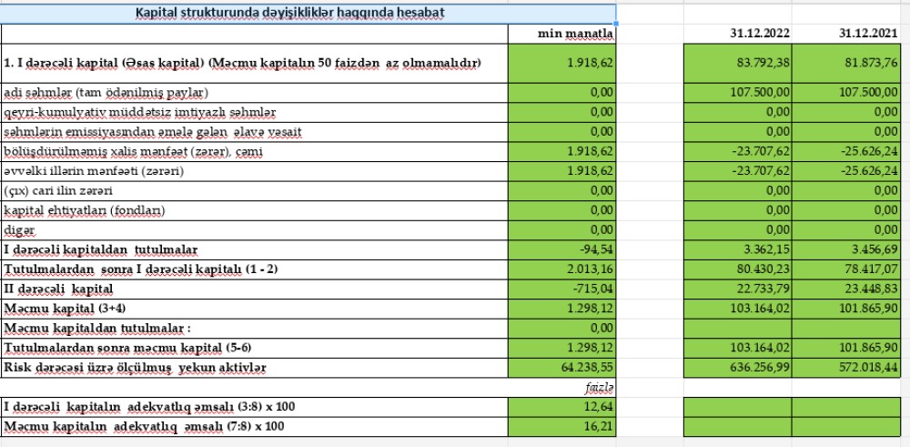 "Muğanbank" ASC 2022-ci il üzrə maliyyə göstəricilərini açıqlayıb.