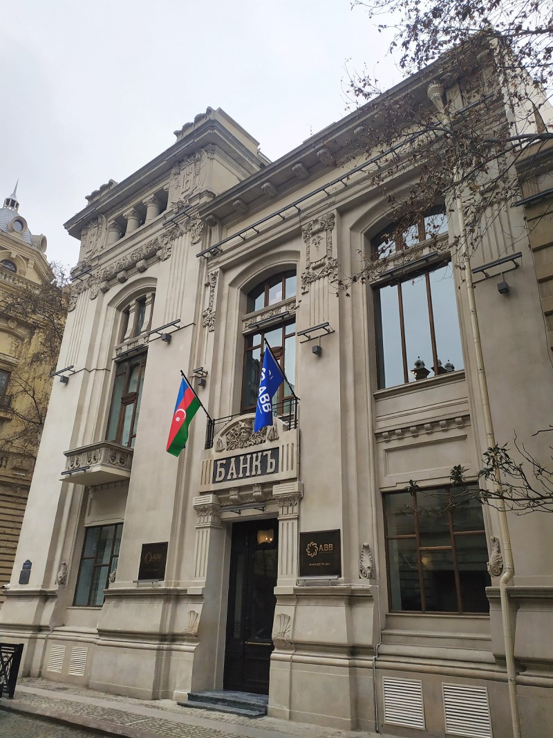 ABB-nin “Mərkəzi” filialının ofisi yerləşən tikilinin təməli 1903-cü ildə qoyulub. Bank üçün nəzərdə tutulduğundan fasadında “Банкъ” sözü və qədim Roma mifologiyasına görə Ticarət tanrısı sayılan Merkurinin təsviri işlənib. 1905-ci ildən burada “Societe Generale” qrupunun törəmə bankı olan Şimal Bankının Bakı şöbəsi fəaliyyətə başlayıb. 1910-1920-ci illərdə isə o dövrdə ölkənin ən böyük bankı sayılan “Rusiya-Asiya Bankı”nın Bakı şöbəsi yerləşib. 1924-cü ildən sonra binada keçmiş SSRİ Dövlət Bankının Bakıdakı kassalarından biri xidmət göstərib. Ötən əsrin 50-ci illərindən binada Kommunal Təsərrüfat və Tikinti Bankı yerləşib. 60-cı illərdə tikilinin ayrı-ayrı hissələrindən bank fəaliyyətindən kənar müxtəlif təyinatlarla istifadə edilib. Daha sonra binada SSRİ banklarından birinin Bakı kontoru fəaliyyət göstərib.