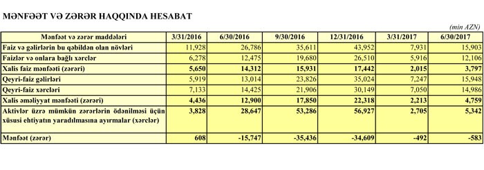 Cəmi gəlirlərdən faiz və qeyri-faiz xərcləri çıxıldıqdan sonra 4 milyon 759 min manat əməliyyat mənfəti qalıb. Bank ötən ilin birinci yarısında 12,9 milyon manat əməliyyat mənfəəti əldə etmişdi.
