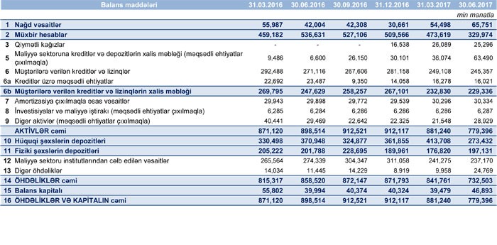 30 İyun 2017-ci il tarixinə “Bank Respublika” ASC 779 milyon 396 min manat cəmi aktivlərə, 732 milyon 503 min manat cəmi öhdəliklərə və 46 milyon 893 min manat cəmi balans kapitalına malik olub. Ötən ilin sonunda Bank, 898 milyon 514 min manat cəmi aktivlərə, 858 min 520 min manat cəmi öhdəliklərə və 39 milyon 994 min manat cəmi balans kapitalına malik idi.