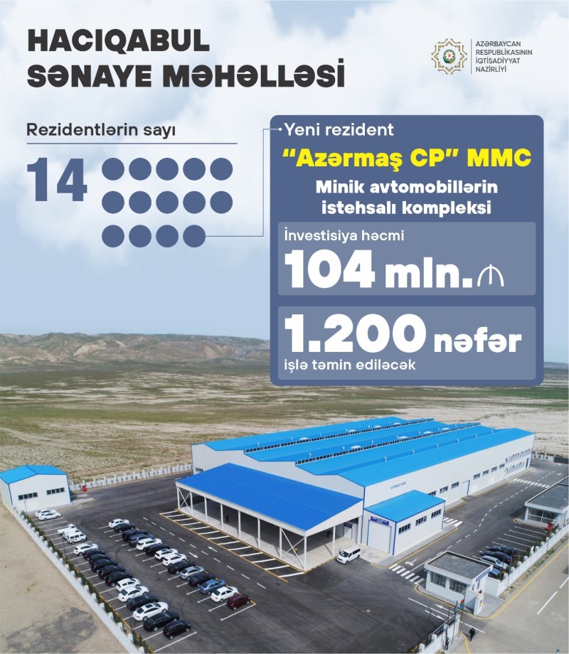 Azərbaycan-Özbəkistan birgə müəssisəsi “Azərmaş CP” MMC-yə Hacıqabul Sənaye Məhəlləsinin rezidenti statusu verilib və rezidentlərin sayı 14-ə çatıb.