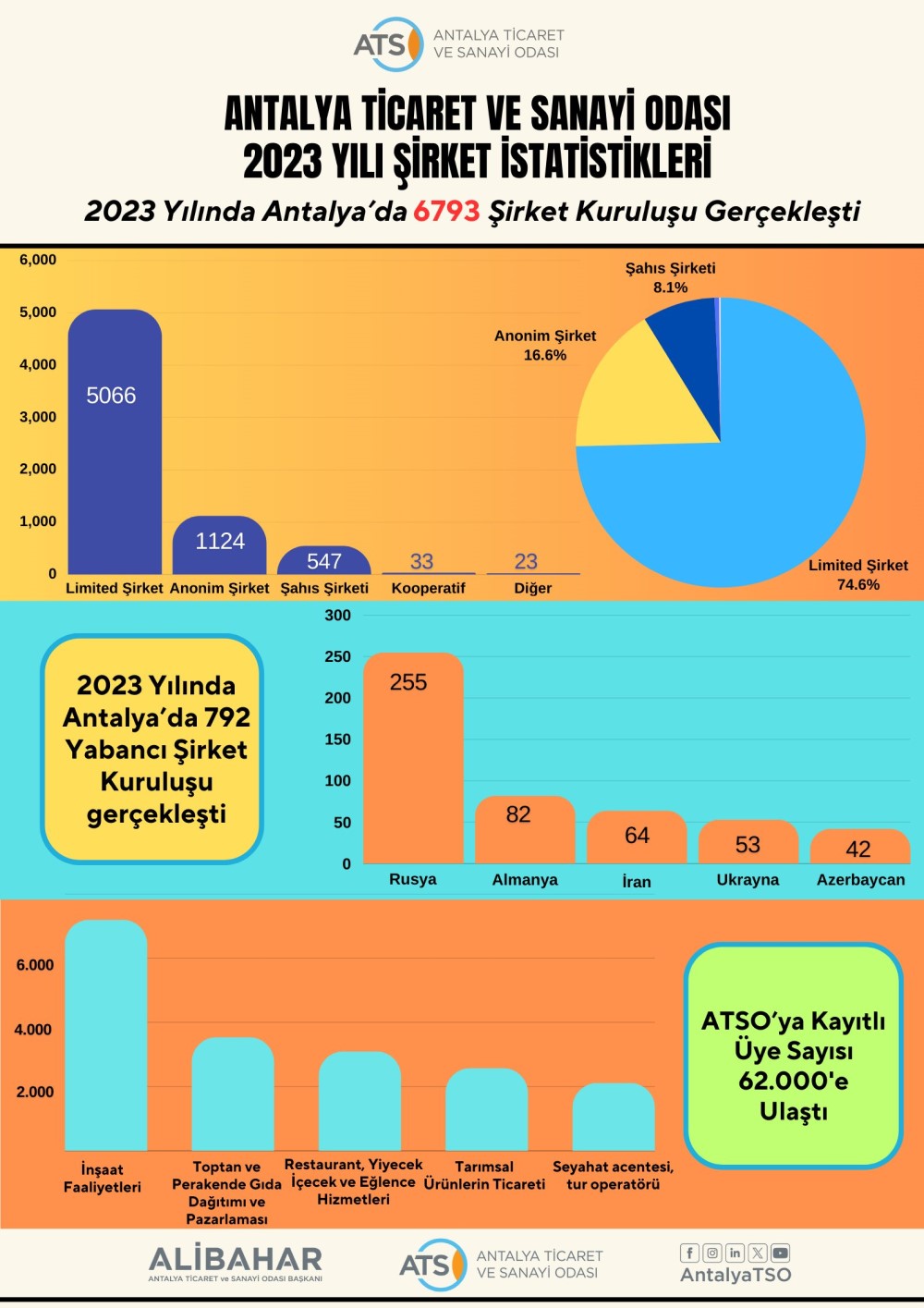 Ümumilikdə 2023-cü ildə xaricilər Antalyada 792 şirkəti qeydiyyatdan keçiriblər. Ümumilikdə, əcnəbilər kurort şəhərində mövcud 62 min kommersiya qurumunun 6,1 minini yaradıblar.