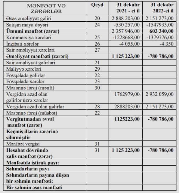 "BQ Aqro" şirkəti zərər edib