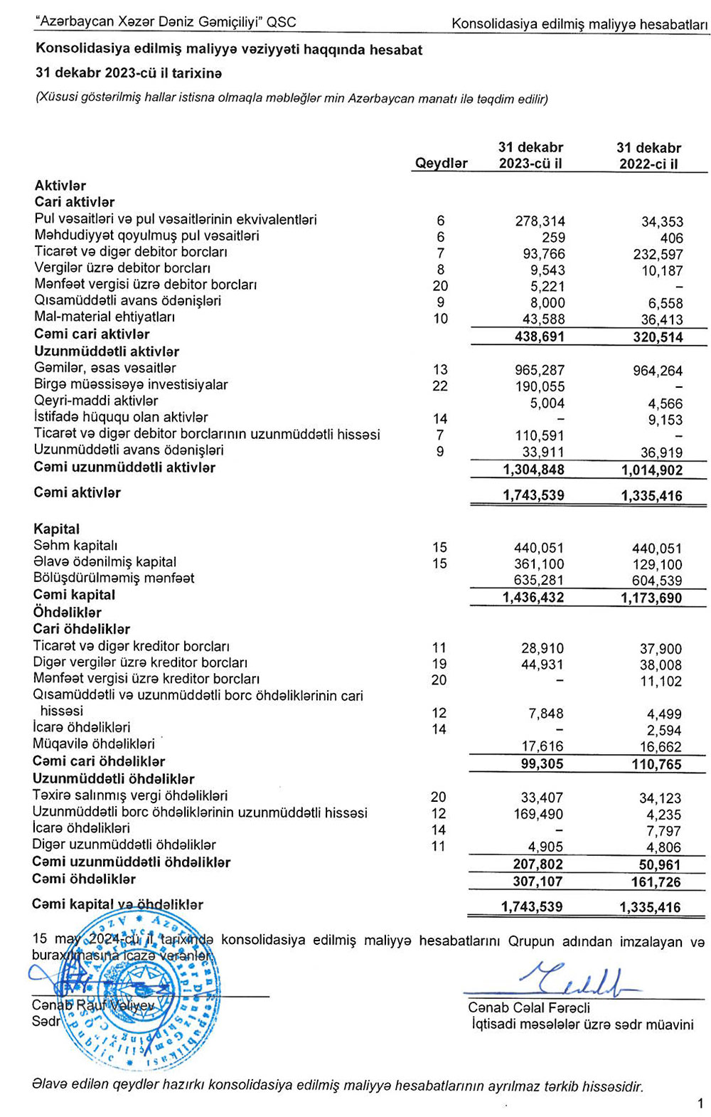 “Azərbaycan Xəzər Dəniz Gəmiçiliyi” QSC-nin (ASCO) 2023-cü il üzrə konsolidasiya olunmuş maliyyə hesabatları hazırlanıb. Hesabatlara dünyanın nüfuzlu auditor şirkətlərindən hesab edilən Ernst & Young Holdings (CIS) B.V. şirkəti audit edib və müsbət rəy verib.