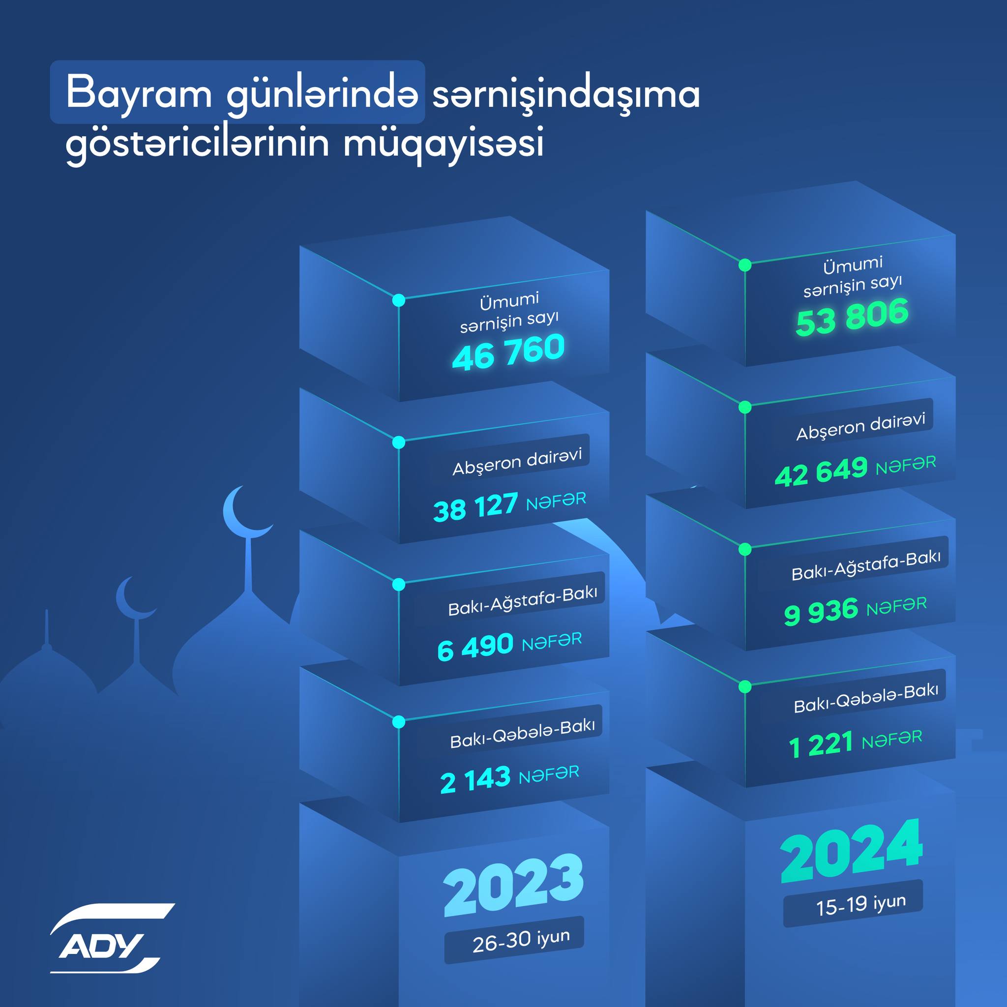 ADY-nin yaydığı məlumatda bildirilir ki, =tən ilin eyni dövrü ilə müqayisədə ən böyük artım Bakı-Ağstafa-Bakı marşrutu ilə səfər edən sərnişinlərin sayında qeydə alınıb.