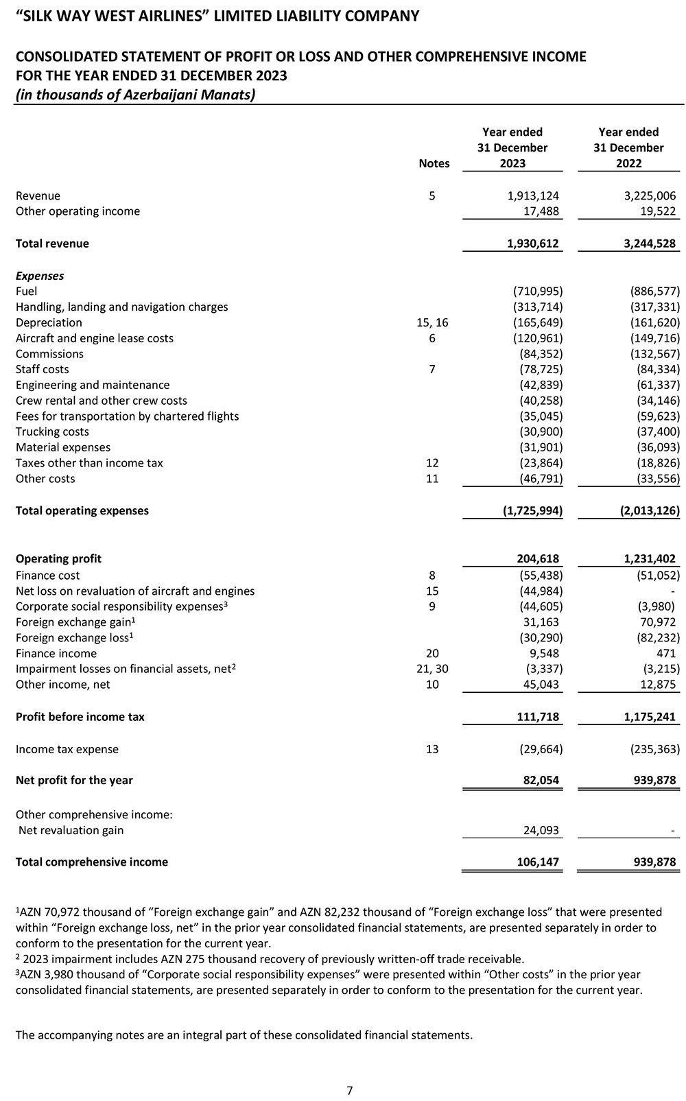Marja.az maliyyə hesabatlarına istinadən xəbər verir ki, "Silk Vey Vest Aviaşirkəti"nin əsas əməliyyat gəliri 2022-ci ildə 3 milyard 225 miylon 6 min manat ikən, 2023-cü ildə 1 milyard 913, milyon 124 min manata düşüb (1 milyard 311 milyon 882 min manat və ya 40,7% azalıb).