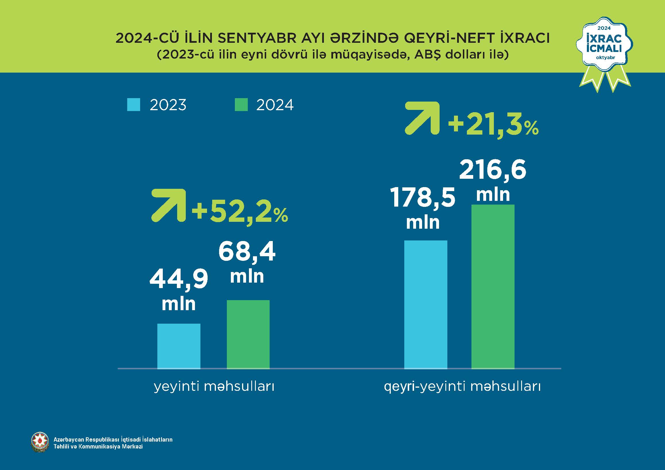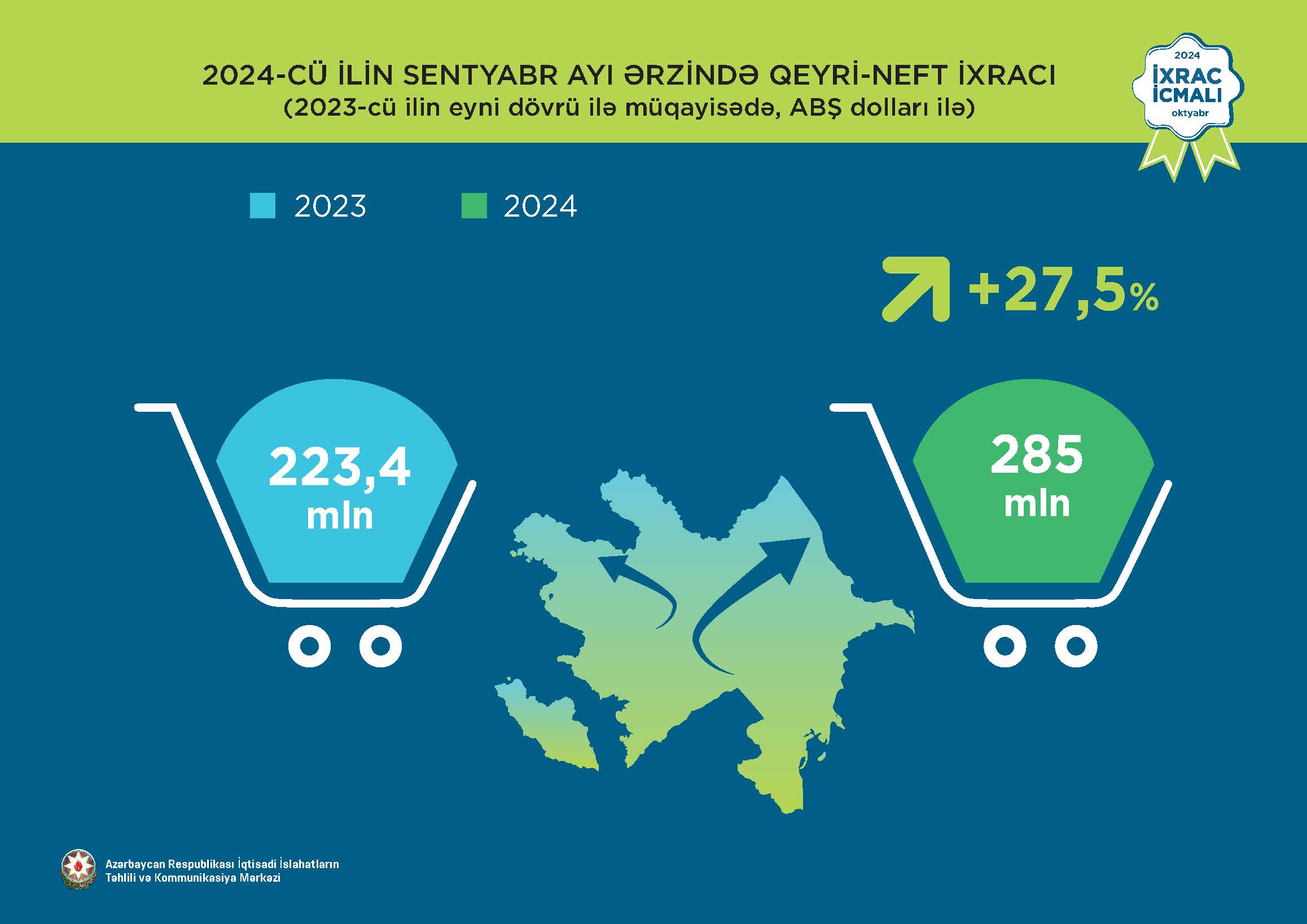 İqtisadi İslahatların Təhlili və Kommunikasiya Mərkəzi (İİTKM) “İxrac icmalı”nın oktyabr ayı üçün ilkin rəqəmlərini təqdim edib.