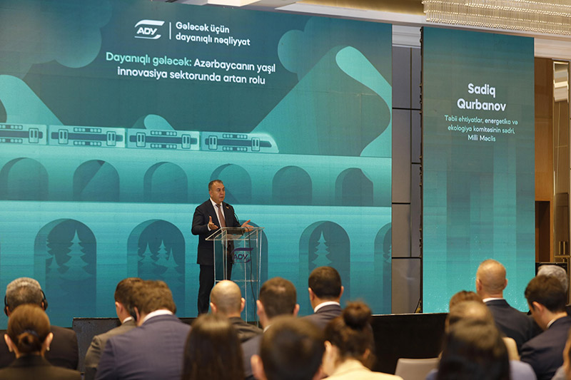 ADY sədri Rövşən Rüstəmov: Dəmir yolu nəqliyyatı qlobal karbon qazı emissiyasının sadəcə 1%-ni təşkil edir və buna görə də digər nəqliyyat növləri ilə müqayisədə daha effektivdir.