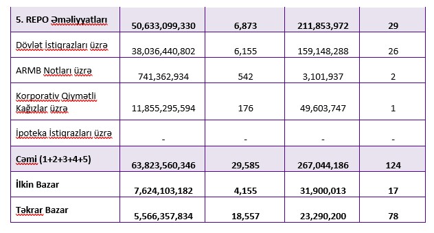 Ötən il Bakı Fond Birjasının ticarət dövriyyəsinin 50 milyard 633 milyon 099, min amantı və ya 79,3%-i REPO əməliyyatları üzrə olub.