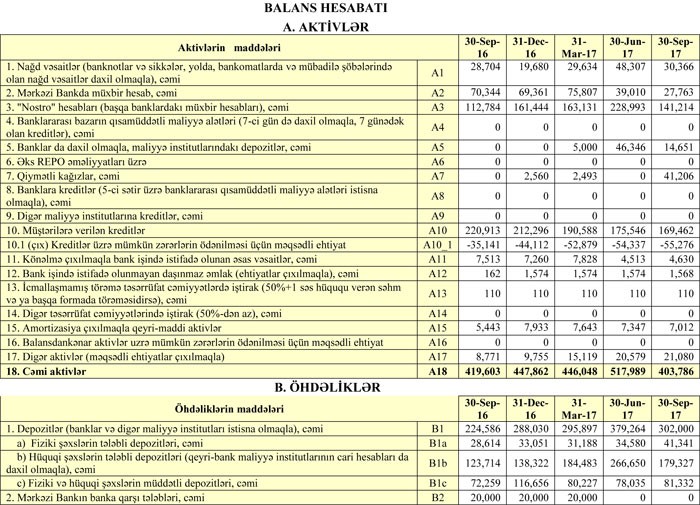 Dolların sabit qaldığı şəraitdə, Bankda, 2017-ci ilin 3-cü rübündə 2-ci rüblə müqayisədə fiziki və hüquqi şəxslərin müddətli əmanətləri 78 milyon 35 min manatdan 81 milyon 332 min manata yüksəlib.