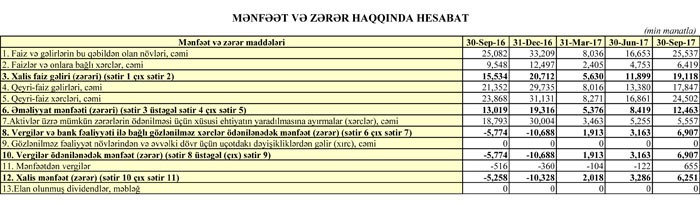 Qeyd edək ki, 2016-cı ilin 9 ayı ərzində “Yapı Kredi Bank Azərbaycan”ın əməliyyat mənfəəti təxminən 13 milyon manat təşkil etmiş, lakin Bank aktivlər üzrə mümkün zərərlərin ödənilməsi üçün xüsusi ehtiyatın yaradılmasına 18 milyon 793 min manat ayırdığından 5 milyon 258 min manat zərər açıqlamışdı.