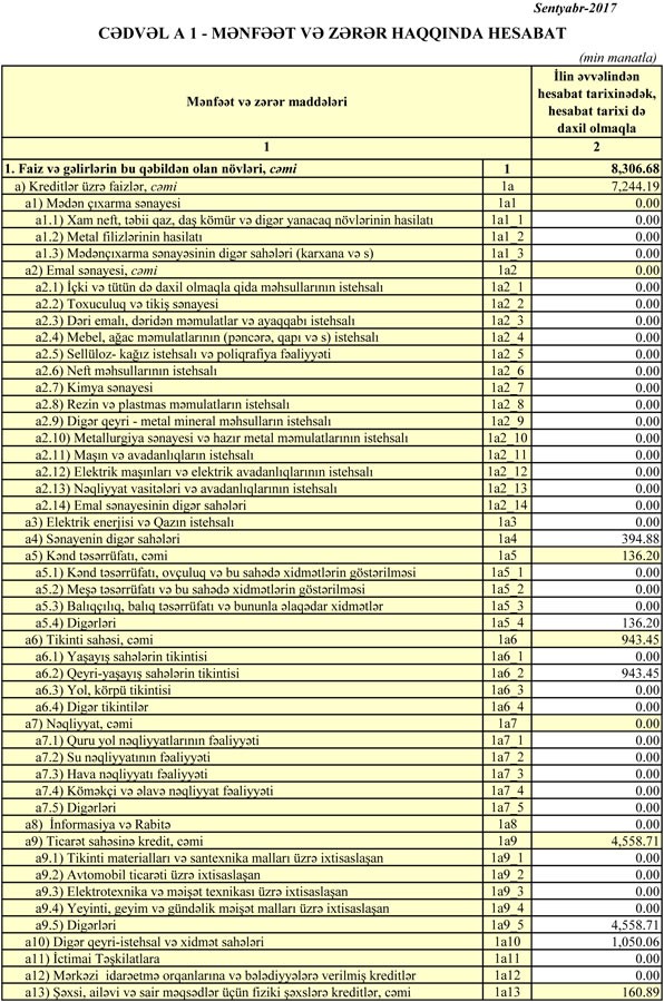 Bankda fiziki şəxlərin müddətli depozitləri (əhalinin əmanətləri) isə 17 milyon 158 min manatdan 36 milyon 574 min manata qalxıb.