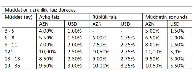 QEYD* 12 ay müddət üzrə faiz dərəcələri 01.04.2019 tarixinədək Kampaniya çərçivəsində qüvvədədir!