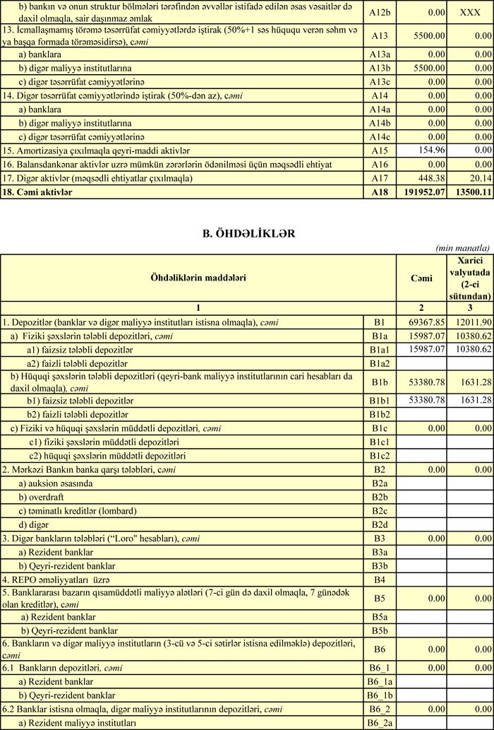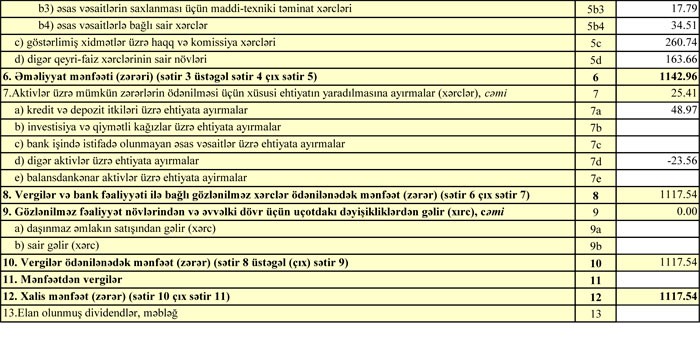 Daha bir bank yeni maliyyə göstəricilərini açıqladı