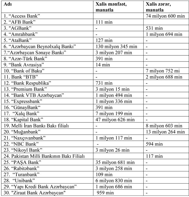 21 bank mənfəət, 9 bank zərər açıqladı - SİYAHI