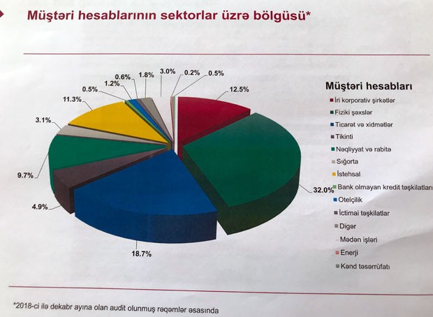 “Müştərilərimizin hesablarının artmasının ən əsas səbəbləri ölkədə aparılan islahatlar, gömrük və vergi sistemində aparılan islahatlar və şəffaflaşmadır. Həmçinin iqtisadiyyatda aktivlik də müşahidə olunur. Bankımızda açılan hər 5 hesabdan 2-si yeni biznesdir. Müştərilərimizin sayının artması da müştəri hesablarının artmasına səbəb olur. Dövriyyəsi 8 milyon manatdan yüksək olan korporativ müştərilərimizin sayı 990 müştəridən 1250-yə, dövriyyəsi 8 milyon manatdan aşağı olan kiçik və orta sahibkar müştərilərin sayı isə 2500-dən 3000 yüksəlib”.