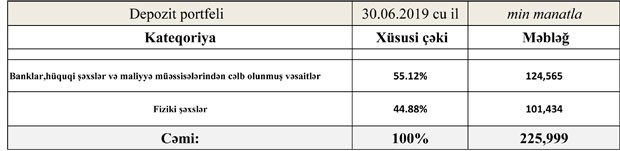 2019-cu ilin birinci yarısında "NBC Bank"da depozitlər 5 milyon 357 min manat artaraq 111 milyon 783 min manata çatıb.