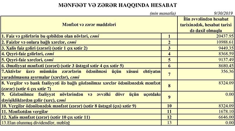 “Marja” Bankın rüblük hesabatlarına istinadən xəbər verir ki, 2019-cu ilin yanvar-sentyabr dövründə “Azərbaycan Sənaye Bankı”nın cəmi gəlirləri 28 milyon 805 min manat, cəmi xərcləri isə 20 milyon 125 min manat təşkil edib. Nəticədə Bankın 8 milyon 680 min manat əməliyyat mənfəəti formalaşıb. Əməliyyat mənfəətində 356 min manat aktivlər üzrə mümkün zərərlərin ödənilməsi üçün xüsusi ehtiyatın yaradılmasına ayrılıb, 1 milyon 678 min manat mənfəət vergisi ödənilib.
