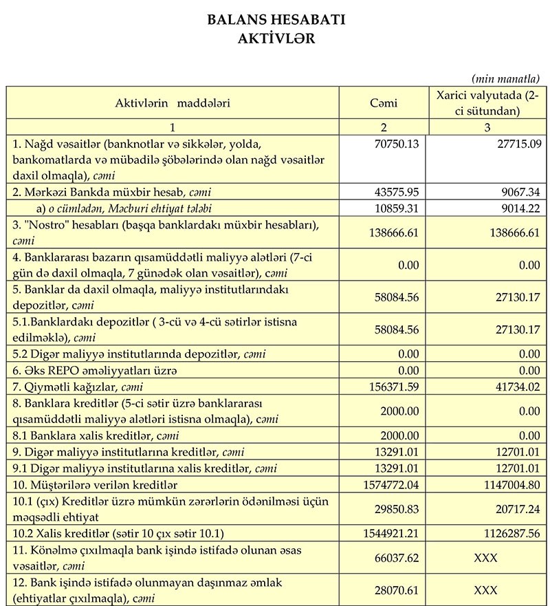 Bankın cəmi kapitalı сari ilin 9 ayı ərzində 125 milyon 910 min manat (44.57%) artaraq 408 milyon 30 min manata çatıb, nizamnamə kapitalı isə 364 milyon 770 min manat təşkil edib", - Bankın məlumatında deyilir