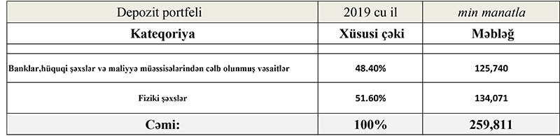 2018-ci illə müqayisədə 2019-cu ildə “NBC Bank”ın depozit portfeli 36 milyon 340 min manat artaraq 142 milyon 766 min manata yüksəlib.