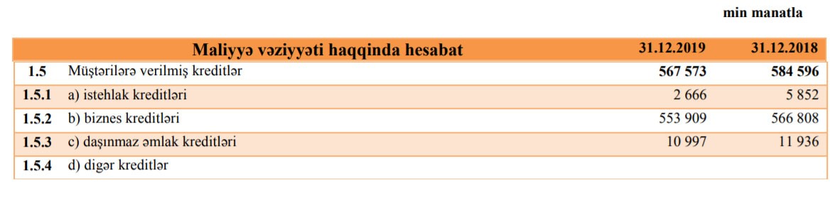 Bu bankın kredit portfelinin 98%-i biznes kreditlərindən ibarətdir