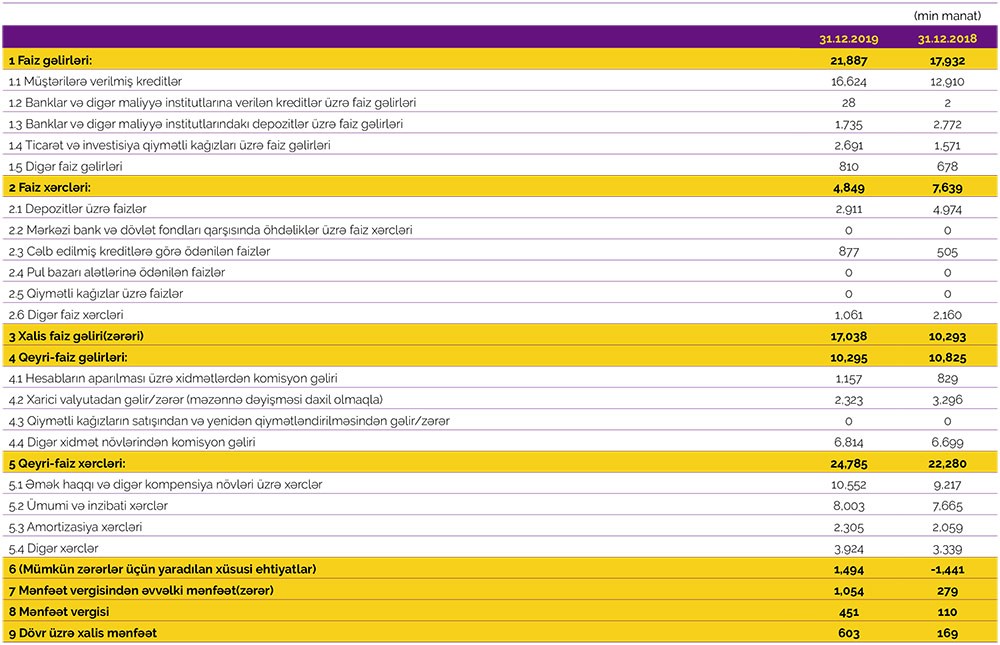 “Marja” Bankın maliyyə göstəricilərinə istinadən xəbər verir ki, ötən il “Azər-Türk Bank”ın cəmi faiz və qeyri-faiz gəlirləri 32 milyon 182 min manat, cəmi faiz və qeyri-faiz xərcləri 29 milyon 634 min manat təşkil edib. Bankın əməliyyat gəlirləri əməliyyat xərclərini üstələdiyindən 2 milyon 548 min manat əməliyyat mənfəəti formalaşıb. Bank əməliyyat mənfəətindən 1 milyon 494 min manat mümkün zərərlər üçün yaradılan xüsusi ehtiyata ayırıb və 451 min manat mənfəət vergisi ödəyib. Beləliklə, “Azər-Türk Bank” ASC 2019-cu ili 603 min manat xalis mənfəət ilə başa vurub.