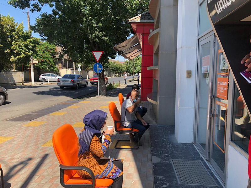 Marja xəbər verir ki, Bankın bir sıra filiallarının qarşısında müştərilərin sosial məsafəni gözləməsi üçün oturacaqlar qoyulub. Bu müştərilər arasında sıxlığın qarşısını almaq üçündür.