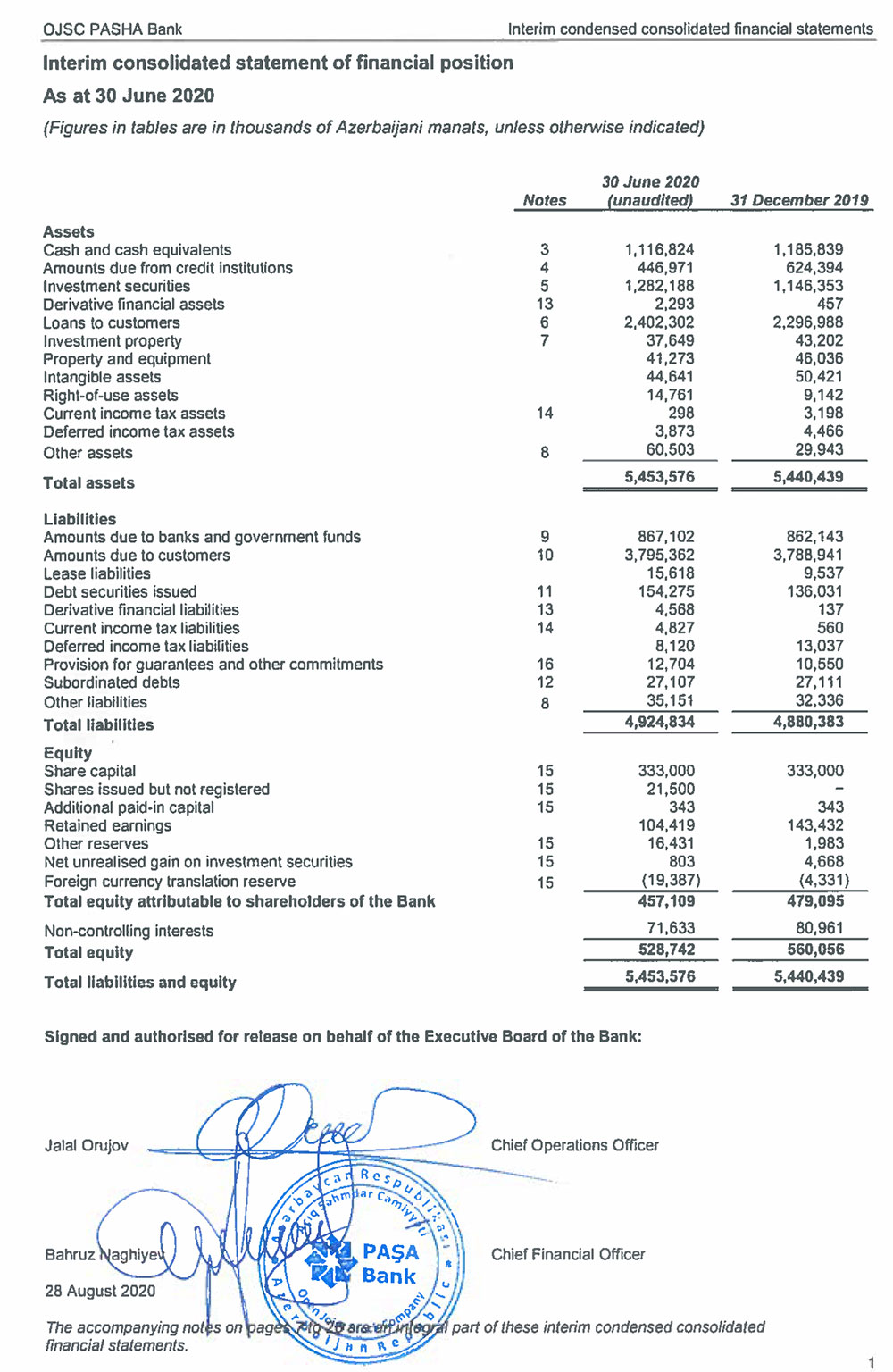 Konsolidə edilmiş hesabat PAŞA Bank qrupunun (PAŞA Bank Azərbaycan, PAŞA Bank Gürcüstan və PAŞA Bank Türkiyə) maliyyə nəticələrini əks etdirir.