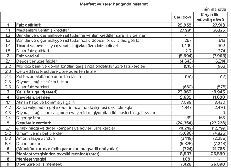 Bankın cari biznes fəaliyyətinin nəticəsini daha düzgün əks etdirən əməliyyat mənfəəti 2,4 dəfə artaraq ötən ilin 9 ayındakı 3 milyon 807 min manatdan 9 milyon 232 min manata yüksəlib.