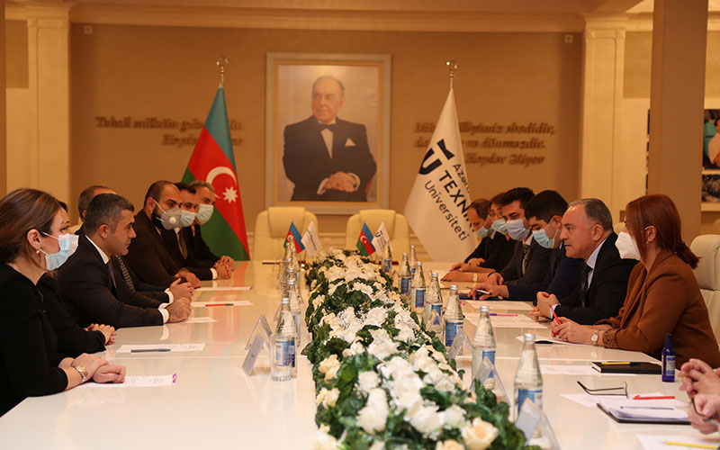 Rektor Vilayət Vəliyev qonaqlara universitetdə görülən işlər, həyata keçirilən yeni layihələr barədə ətraflı məlumat verib. Bildirib ki, tələbələrin əmək bazarına çıxışını təmin etmək üçün universitet-sənaye işbirliyinin inkişaf etdirilməsi prioritet məsələlərdən biridir.