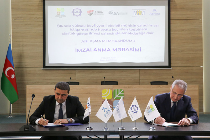 22 fevral 2022-ci il tarixində Azərbaycan Mərkəzi Bankının təşəbbüsü ilə ölkədə fəaliyyət göstərən maliyyə Assosiasiyaları - Azərbaycan Banklar, Azərbaycan Fintex, Azərbaycan Mikromaliyyə, Azərbaycan Sığortaçılar və Azərbaycan Fond Bazarı İştirakçılarının Assosiasiyaları ilə Ekologiya və Təbii Sərvətlər Nazirliyi arasında hər biri ilə ayrı-ayrılıqda Anlaşma Memorandumu imzalanıb.