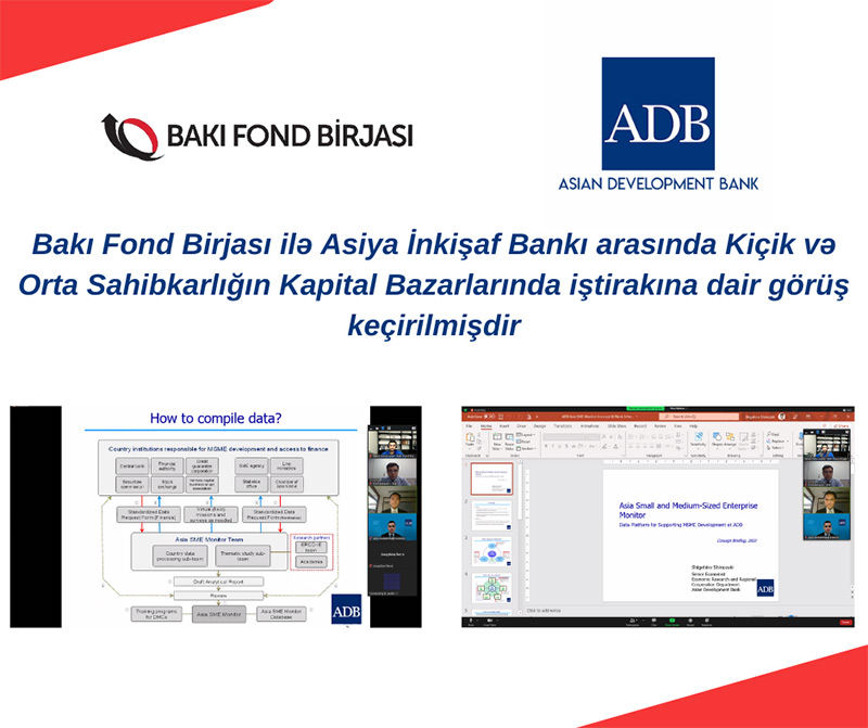 15 Mart 2022-ci il tarixində Asiya İnkişaf Bankı ilə Kiçik və Orta Sahibkarlığın Kapital Bazarlarında iştirakına dair görüş keçirilib.