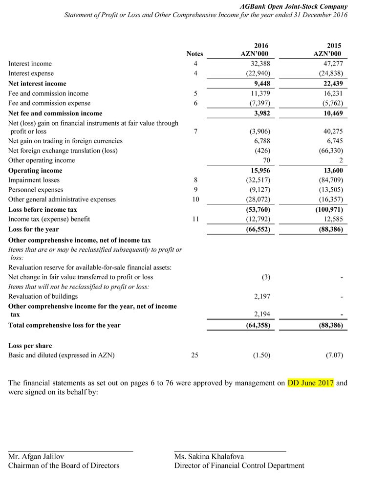 Qeyd edək ki, "AgBank" 2016-cı il ərzində 77,2 milyon manatlıq kapital artırımını göstərərək ictimaiyyətə "hər şeyin yaxşı olduğu" mesajını verirdi. Bu gün məlum olur ki, Bank kapitalın itirib, vəziyyət deyildiyi kimi düzəlməyib.