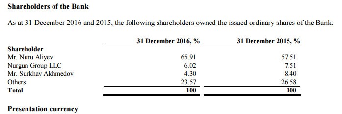 Dərc edilmiş illik maliyyə hesabatına əsasən, 2016-cı ildə bankın bütün səhmdarlarının payı dəyişib.